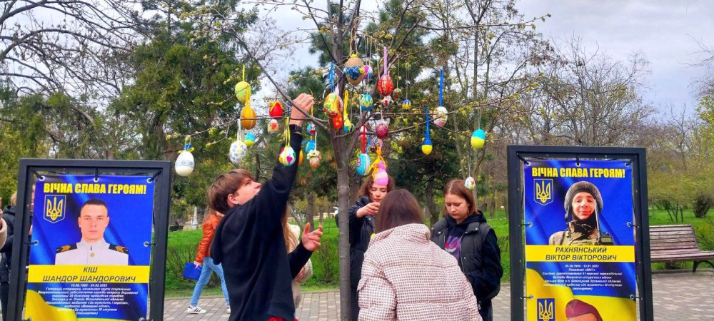 16 квітня учні одеських шкіл разом із родинами загиблих військовослужбовців прикрасили дерева писанками на Алеї пам'яті загиблих героїв у Центральному парку імені Шевченка. Цю інформацію оприлюднила пресслужба міської ради Одеси. Важливо відзначити, що напередодні святкувань Великодня в навчальних закладах Одеси проходить благодійна акція під назвою «Великоднє дерево Миру» в рамках марафону «До світлого дня – світлі вчинки».
