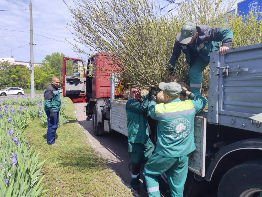 Серед них ялівці, гібіскуси та дроки, які висаджуються з закритою кореневою системою для кращого приживлення в міських умовах.