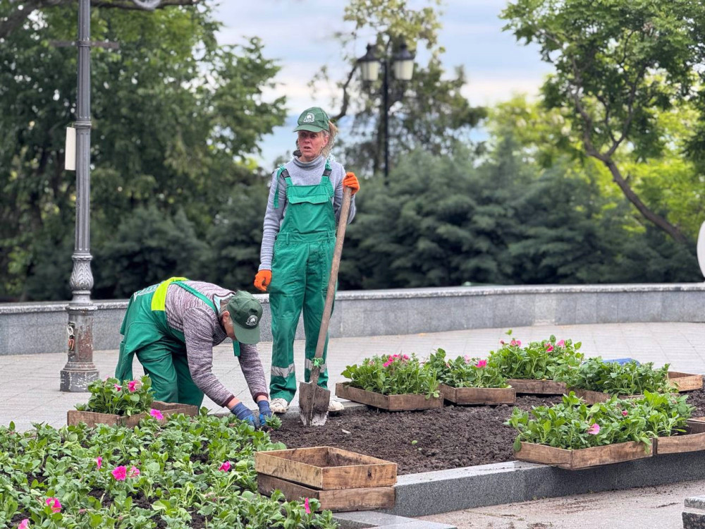 Перші літники вже з’явилися на Біржовій площі та клумбах біля Приморської адміністрації, замінюючи весняні квіти. У планах на цей рік – висадити 350 тисяч літніх рослин.