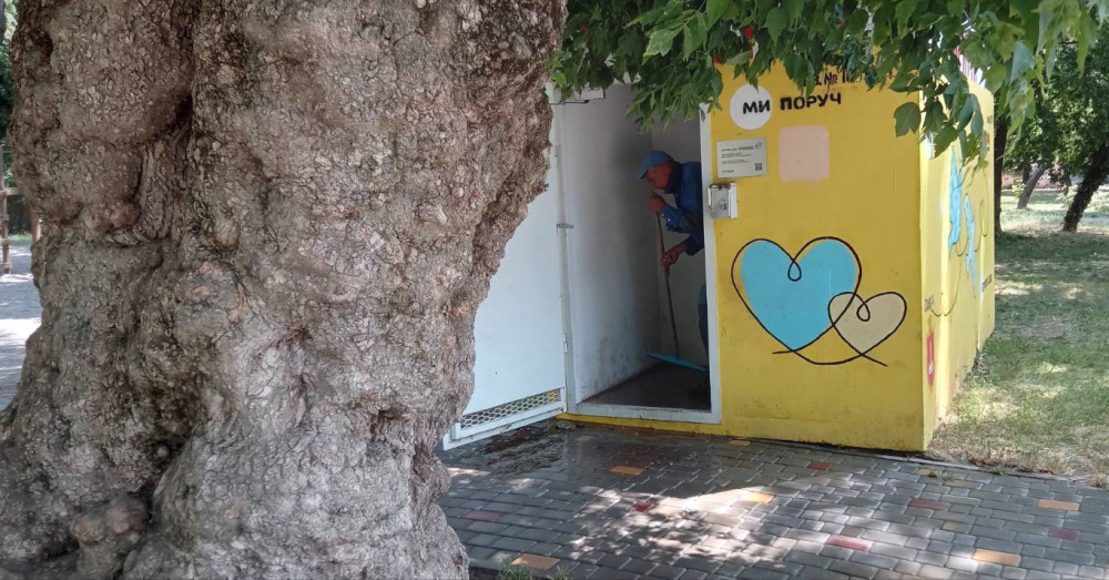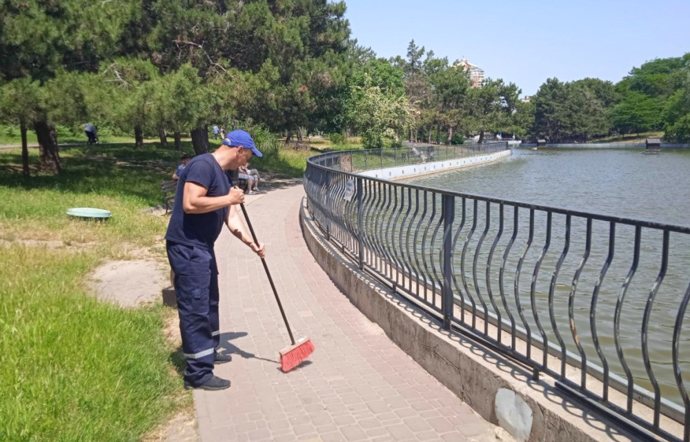 Додатково, згідно з графіком, працівники підприємства здійснюють миття панорамного ліфта, встановленого в Грецькому парку, прибирають мобільні укриття та інші прилеглі території: навколо фонтанів, бюветів та ставок у дендропарку Перемоги.