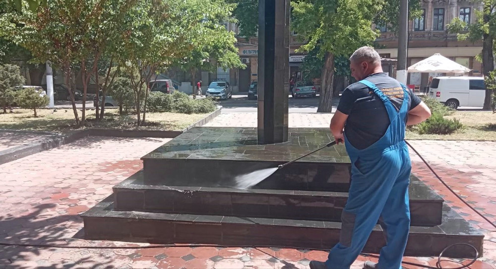 Спеціалісти відділу по догляду за монументами Комунального підприємства «Сервісний центр» в Одесі реалізують послуги з очищення пам'ятників.