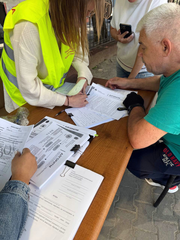 Співробітники районних адміністрацій приймають заявки на матеріальну допомогу в рамках програми «Незламна Одеса», а також надають консультації з приводу документів, необхідних для програми єВідновлення.