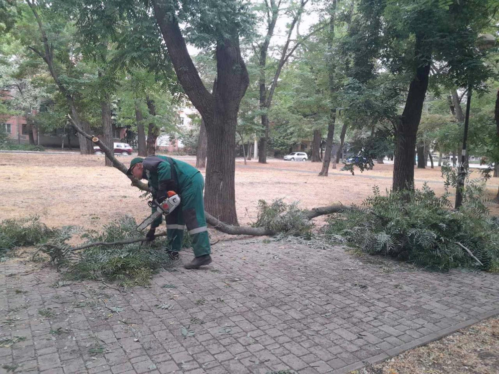 Комунальники займаються розпилюванням повалених дерев та їх вивезенням, а також прибиранням вулиць від сміття.