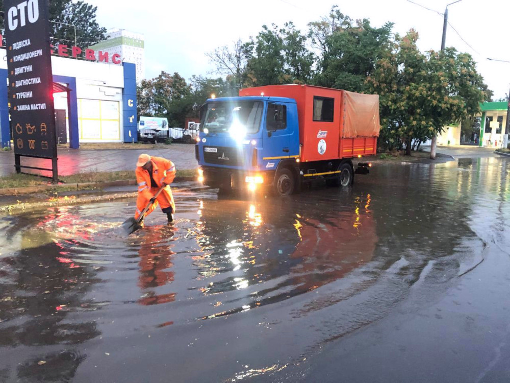 Фахівці КП «Міські дороги» додатково очищають решітки дощоприймачів та промивають колектори. У місті працюють 269 робітників та 48 одиниць спецтехніки. Підтоплень на вулицях поки що не зафіксовано.