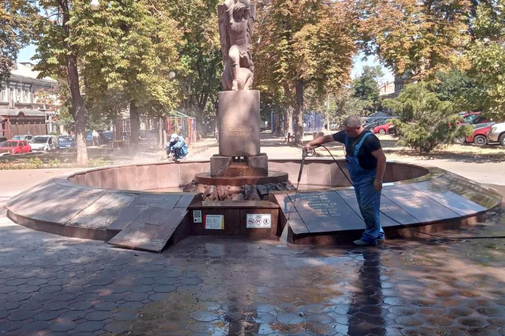В рамках поточного ремонту комунальники закріпили меморіальні плити та обробили їхні стикові місця.