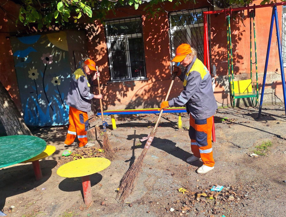 Двічі на день співробітники здійснюють прибирання (підмітання територій, очищення сміттєвих контейнерів, видалення сміття, миття урн тощо).