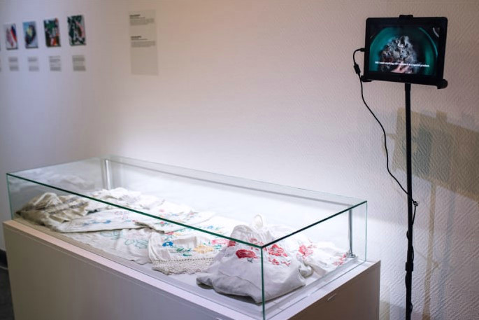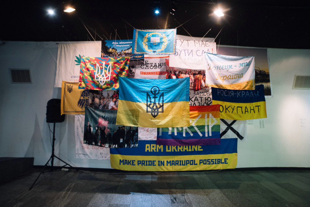 Серед експонатів: карикатурні фігури «освобождаючих» від Сергія Захарова, меми Максима Паленка, відеоісторії про «поранені» культурні об'єкти в Тростянці й Охтирці, документальний фільм «Спротив» Акіма Галімова, а також роботи сучасних художниць.