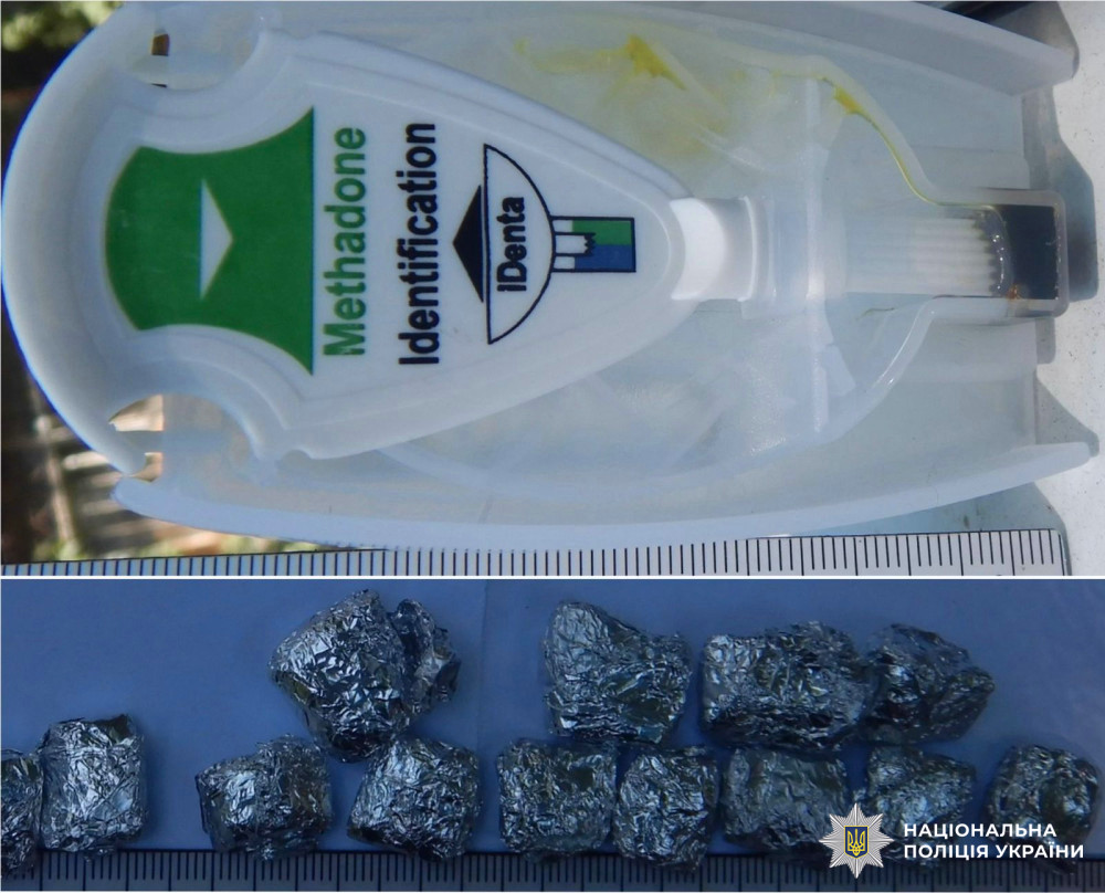 Під час обшуку правоохоронці вилучили три згортки з білою кристалічною речовиною та ще 19 пакунків, які були в її помешканні. Один із згортків пройшов експрес-тестування, що підтвердило наявність метадону.