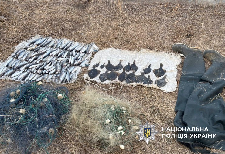 Слідча група, що прибула на місце події, вилучила у правопорушника три ліскові сітки загальною довжиною 150 метрів, забрідний костюм та 172 одиниці риби – кефалі та камбали.