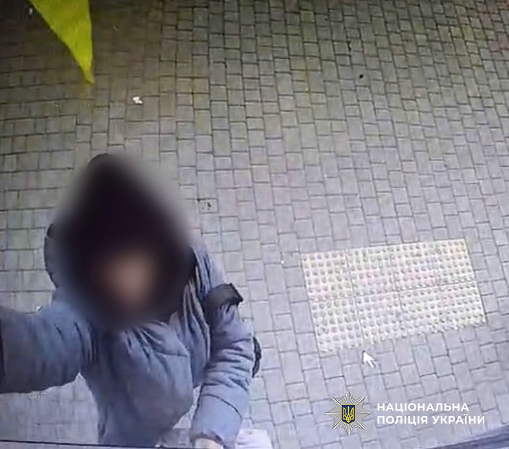 Правоохоронці знайшли відео з камер спостереження, де жінка, не зважаючи на людей навколо, зірвала прапор України, закріплений на фасаді магазину, і викинула його у смітник.