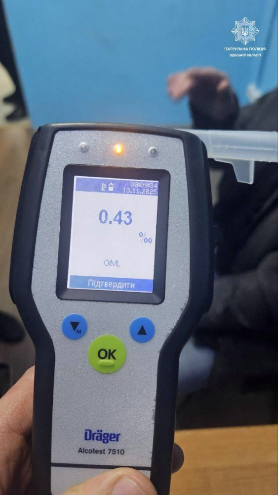 У Одесі патрульні затримали водія електросамоката, що не дотримувався правил дорожнього руху. Коли інспектори вимагали зупинитися, він ігнорував їхні команди і продовжував рух. Інцидент стався 12 листопада на вулиці Посмітного. За інформацією пресслужби поліції, після примусової зупинки виявилось, що водій був під впливом алкоголю. Прилад Drager зафіксував 0,43 проміле.