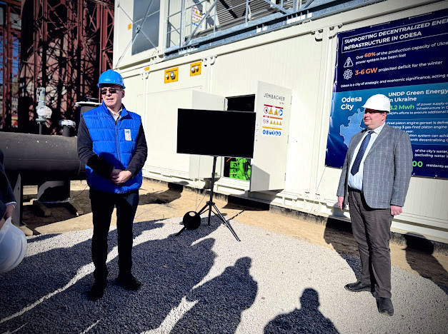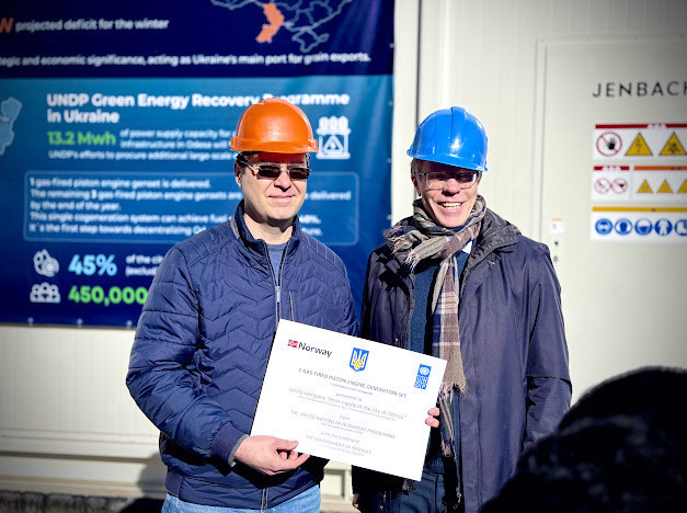 На церемонії передачі газопоршневої електростанції КП "Теплопостачання міста Одеси" були присутні: постійний представник ПРООН в Україні пан Яко Сільє, заступник голови місії Посольства Норвегії пан Ян Флете, Посол Японії пан Масаші Накаґоме (у форматі відеозвернення), Надзвичайний і Повноважний Посол Швеції пан Мартін Оберг, заступник Міністра енергетики України Микола Колісник (у відеозверненні) та керівниця Програми зеленого відновлення енергетики ПРООН Юлія Рибак.