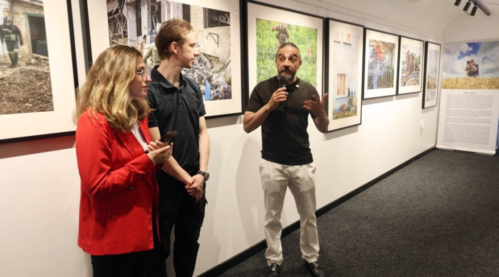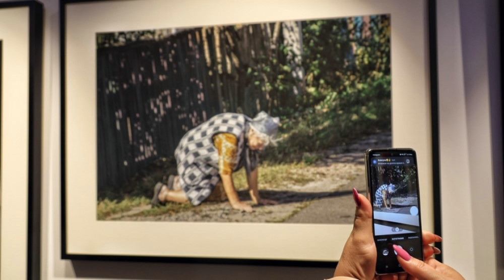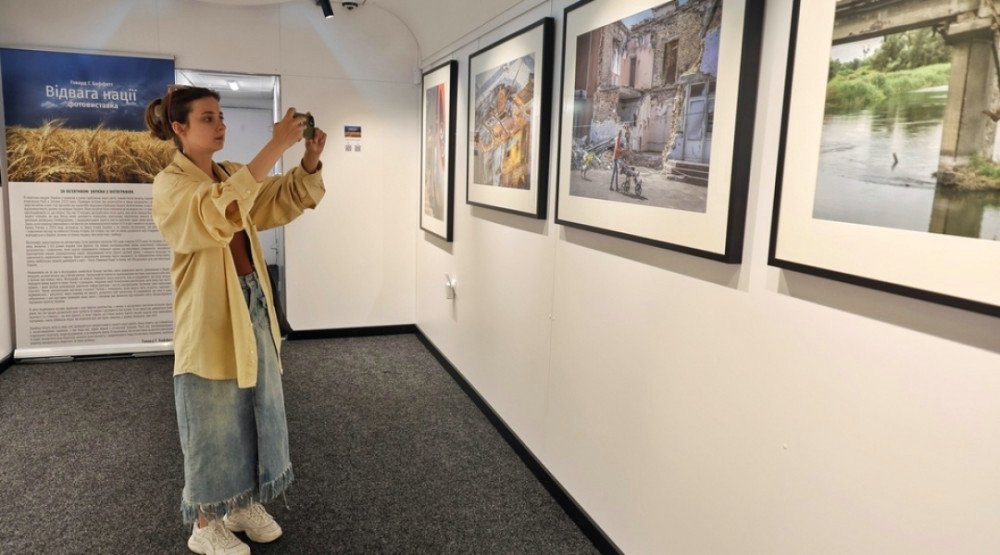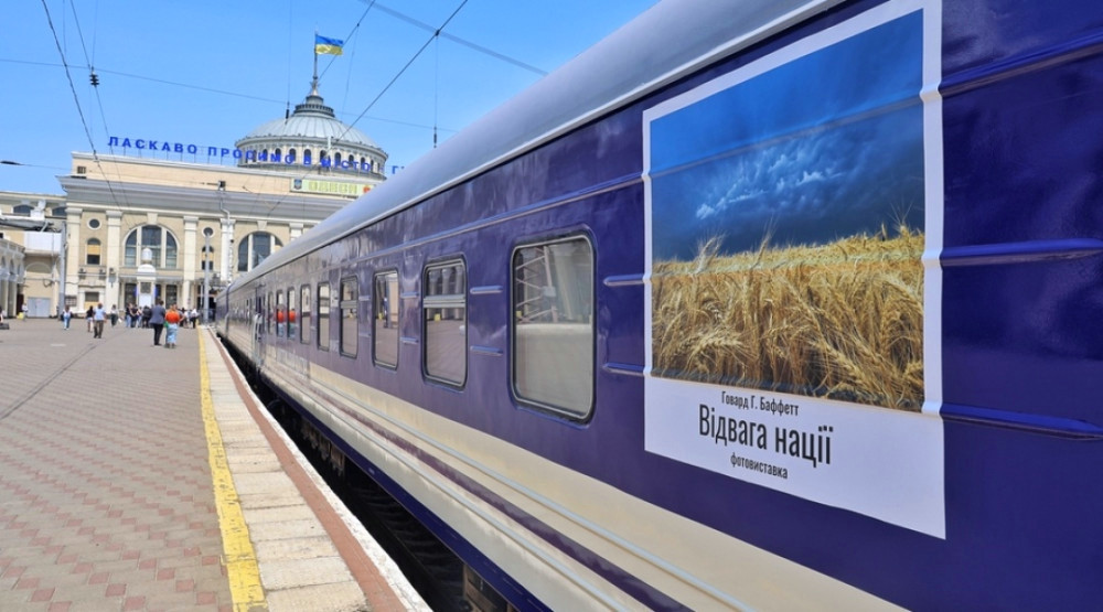 У спеціально облаштованих вагонах зібрані роботи фотографа та філантропа Говарда Баффета, які він зробив під час своїх поїздок Україною в умовах війни.