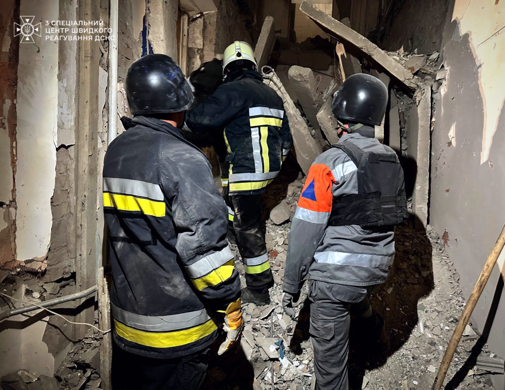 Цю інформацію надала Державна служба України з надзвичайних ситуацій. Команда рятувальників 3-го спеціалізованого центру ДСНС безперервно працює над розчищенням завалів після атаки на один з навчальних закладів Білгород-Дністровського в Одеській області.